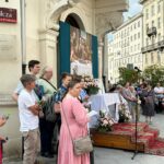 Падчас трэцяга прыпынку кс. Вячаслаў чытаў Евангелле па-беларуску, а наш хор спяваў беларускія спевы.